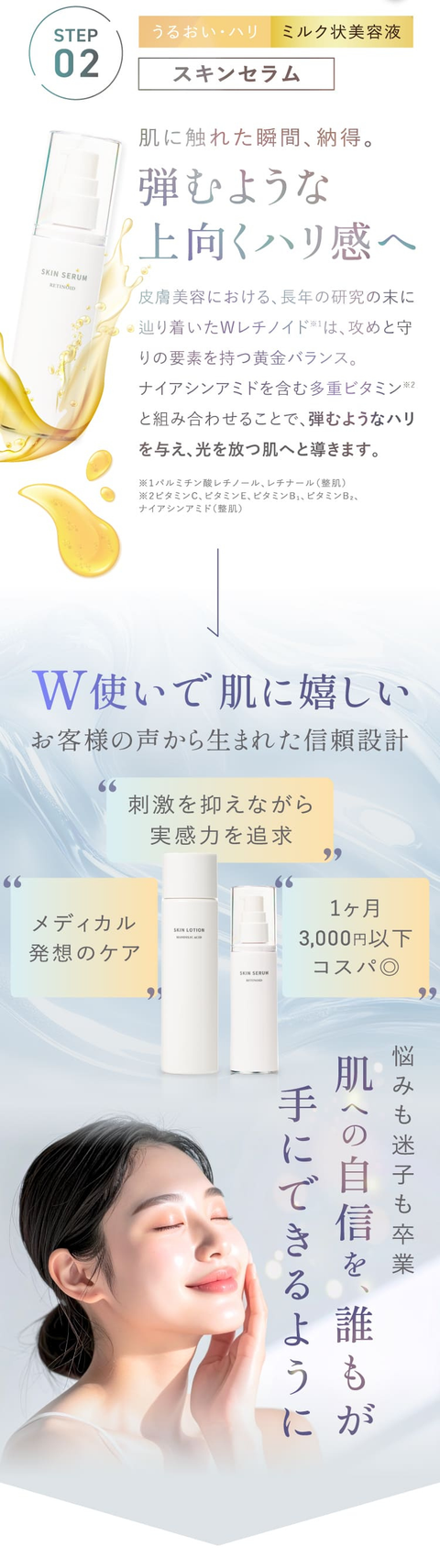 2種類のレチノイド配合でハリ肌へ